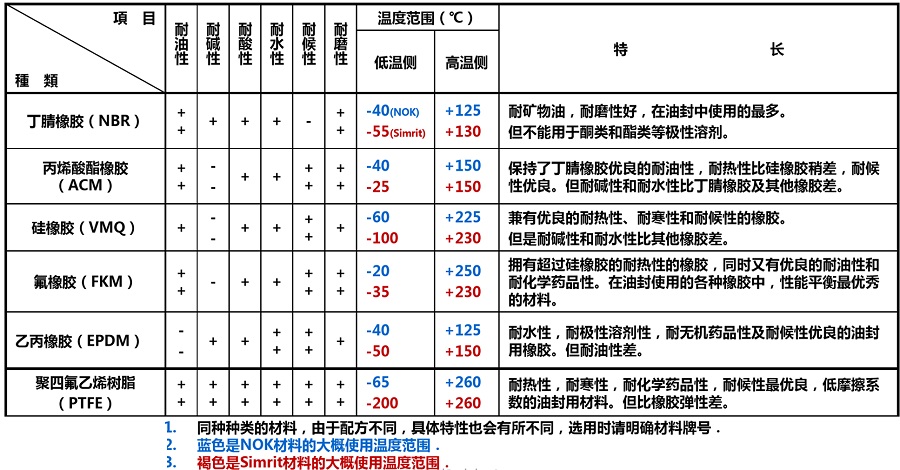 油封使用的橡膠種類及其特長
