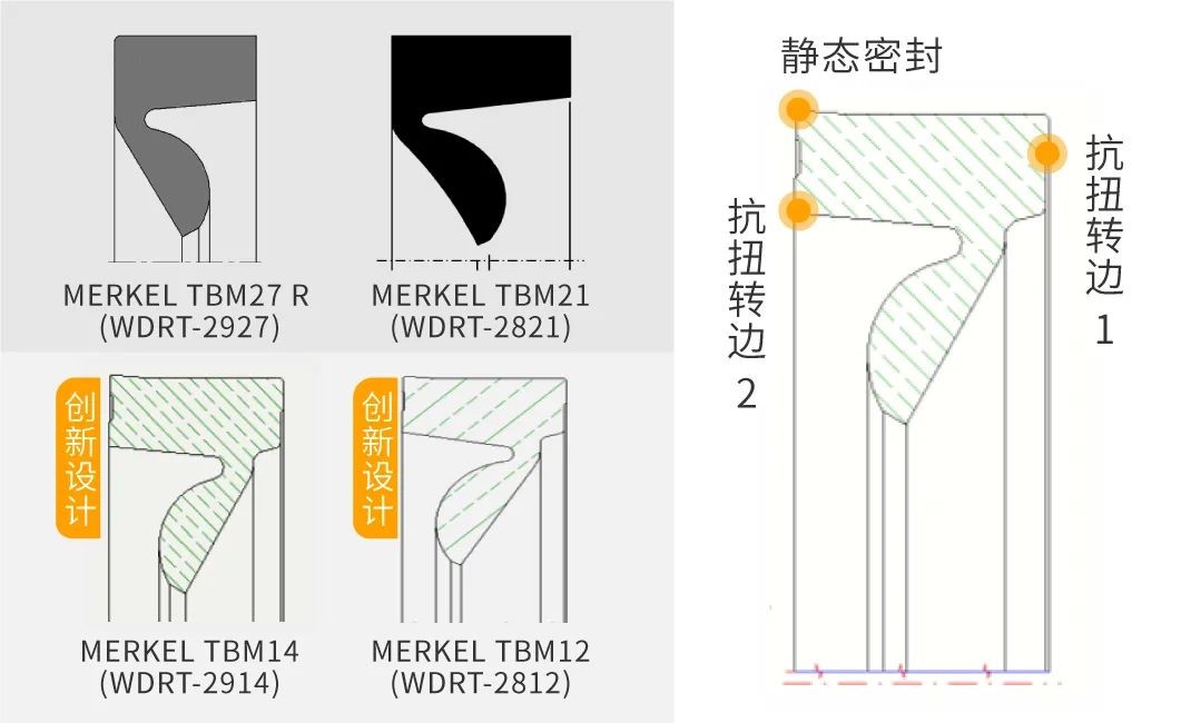 恩福創(chuàng)新設(shè)計(jì)的TBM系列主驅(qū)動(dòng)系統(tǒng)密封解決方案,可以在嚴(yán)苛工況條件下,為大直徑盾構(gòu)設(shè)備提供完善的密封解決方案。MERKEL TBM27 R和MERKEL TBM21是目前應(yīng)用范圍最廣的產(chǎn)品,創(chuàng)新設(shè)計(jì)的MERKEL TBM14和MERKEL TBM12也已成為新一代主流密封產(chǎn)品,其主要優(yōu)勢(shì)在于: